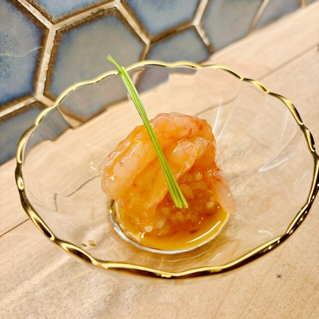 甘海老は裏漉ししたいくらを漬け地に加えた、「いくら醤油」漬け。