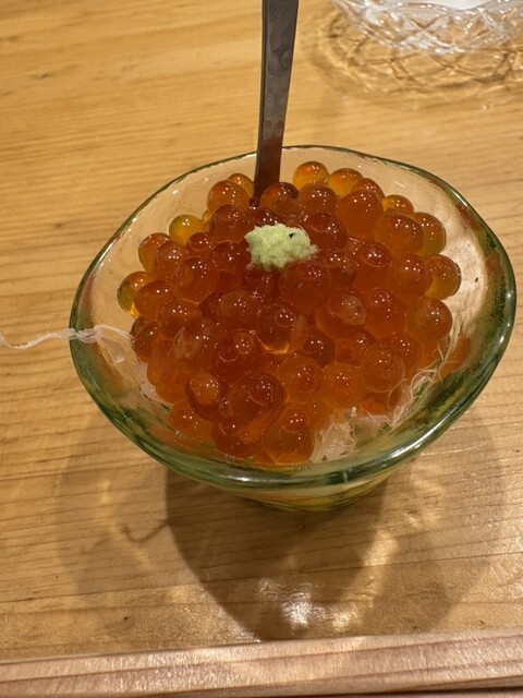 目の前で色々なお魚のブツ切りを入れてくれました。こんな贅沢な茶碗蒸し初めてです!
