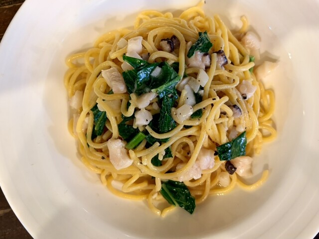 釜石のタコと種から拘ったカブのパスタ