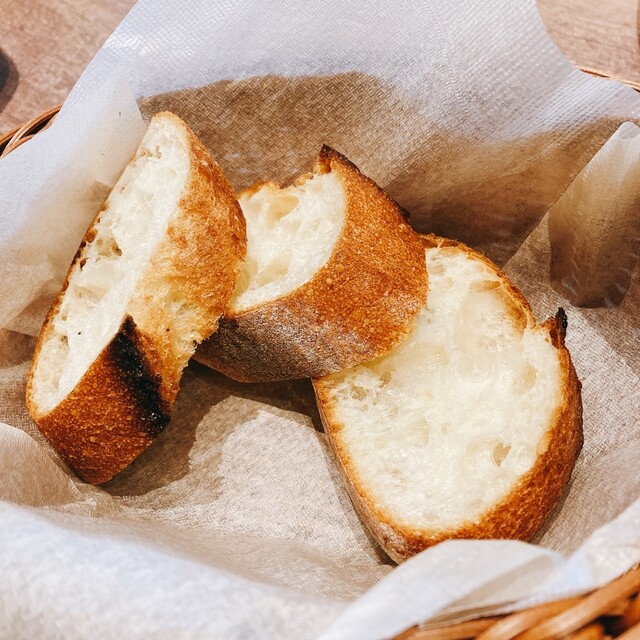 カレイのソテーは皮目がパリっと香ばしく、身がふわっふわ♡ソースがさらっとしたビスクなので、カレイの淡白な旨味を上品に引き立ててるなって思います♡バケットが付いてくるので、マッシュポテトやビスクをつけて食べるとまた旨い(o^^o)