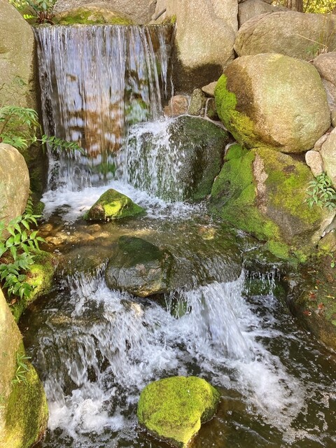 住吉神社のすぐ側にある日本庭園。平日ということもあり静かです。苔むした茶庭を歩いていると時間がゆっくり流れるみたい(´ε` )
