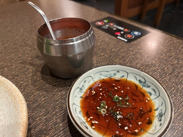 つけダレ単体でも美味しかったですが、お店の人にすすめられて何やら辛そうなタレをエイやっとつけダレに投入し、拡販します。これが旨味を深めて非常に美味しかった。