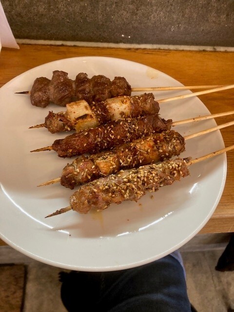以前より気になっていた店。ランチを食べておらず小腹が空いていたため、活気があった同店に吸い込まれるように入店。ハイボールと串盛り5本を注文。ドリンクの提供は早く串も炭焼きながら素早い提供だった。スパイスの効いた羊肉は臭みもなくおいしく、お酒が進む味わいでした。