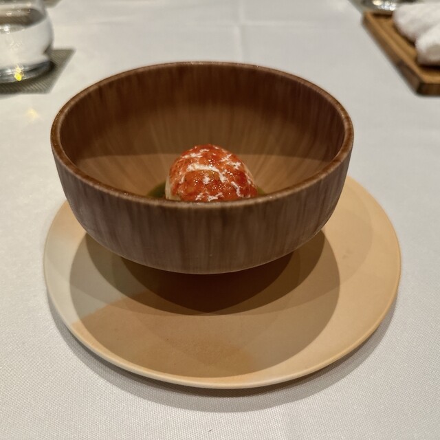 もみの木のアイス 鬼灯と松ぼっくりのソース 鬼灯のチュイール もみの新芽のピクルス