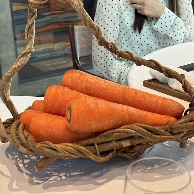 f 雪ノ下にんじん 人参のロースト 発酵人参のアイス 人参チップを人参ジュースで戻す 人参の葉っぱのソース