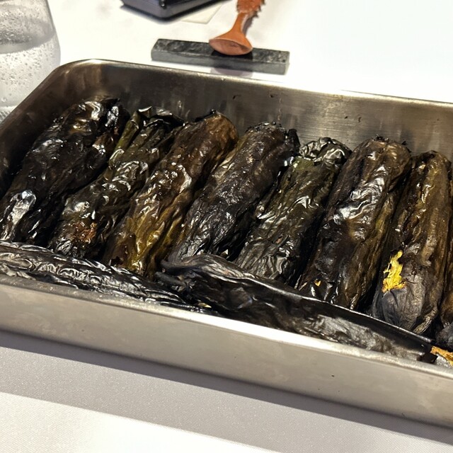 fナガノパープル ストラッチャテッラ 焼き茄子 発酵した茄子のソース ローストクローブオイル