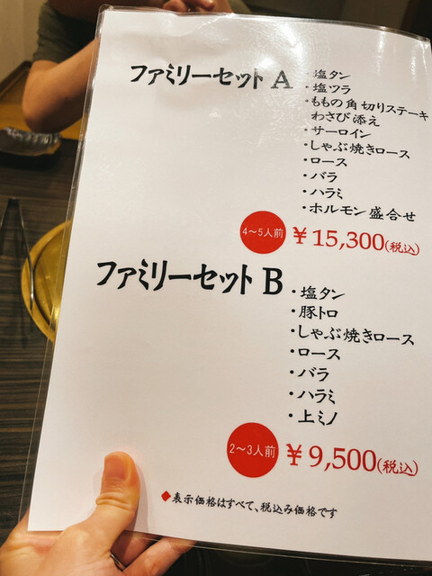 (塩タン・豚トロ・しゃぶ焼きコース・ロース・バラ・ハラミ・上ミノ)9500円