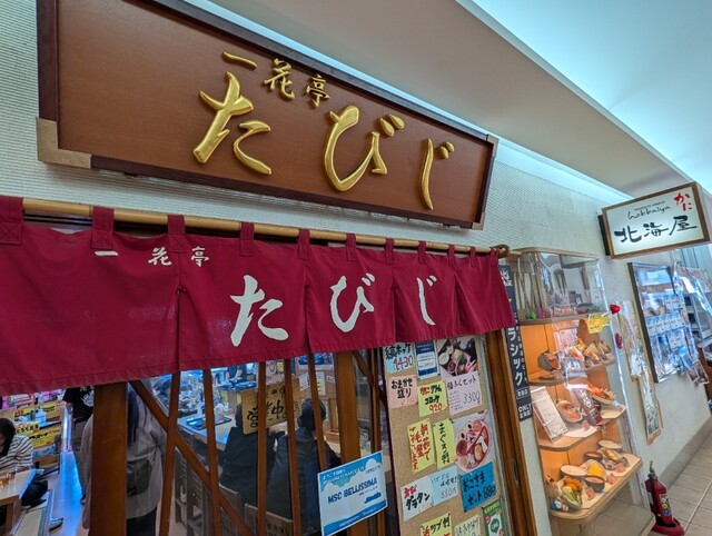 一花亭たびじは、北海道の豊かな海の恵みを心ゆくまで堪能できる名店です。特に、写真にもある活きイカの刺身は、身が驚くほど透き通り、小気味よいコリコリとした食感がたまりません。噛むほどに広がる甘みは、まさに鮮度の証です。