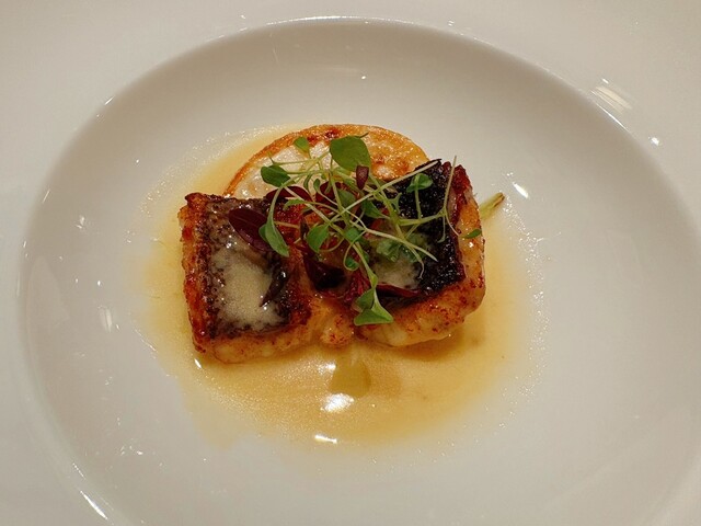 前菜のパイ包み焼きは、パイに包まれた鴨がジューシーでピスタチオの食感と相まって楽しい一皿でした。