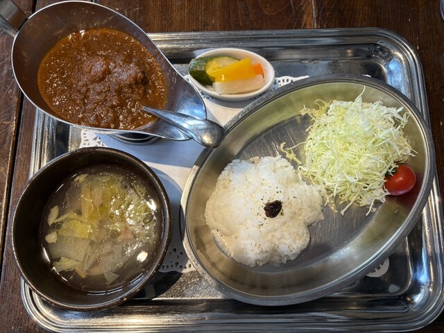 お店のお薦めという海老カレーは、海老がゴロゴロと入っており、千切りキャベツとライスにかけて食べるのが白洲次郎風ということで同じように食べましたが、スパイスが効いていて尚且つサッパリとした味わいで、とても美味しかったです。