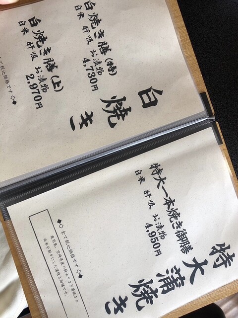 特大一本焼き(蒲焼き)御膳と白焼き膳(特)を注文