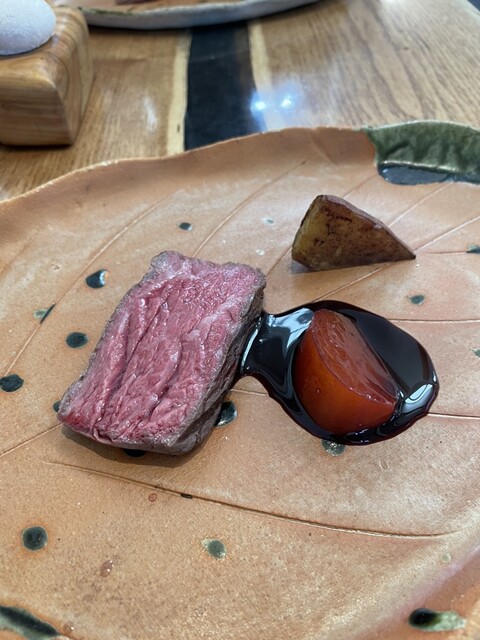 松阪牛 二郎柿とほうじ茶のソースで 香りが凄い さつまいもはメインとしても出せるほど糖度が高い