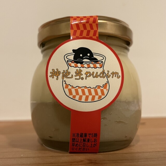 神池芋プリン4 冷凍の3層プリンだが、一番下の層の芋が甘さが引き立ってクセになる。一番上のキャラメル層にも芋が含まれているので、3層を一気に食べるのがおすすめ。