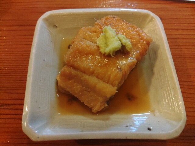 ホタテと海苔の佃煮と山葵の組合せも面白く日本酒が進みます