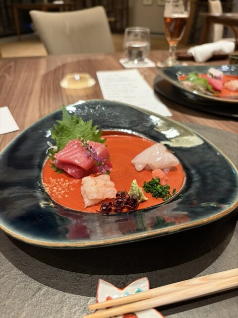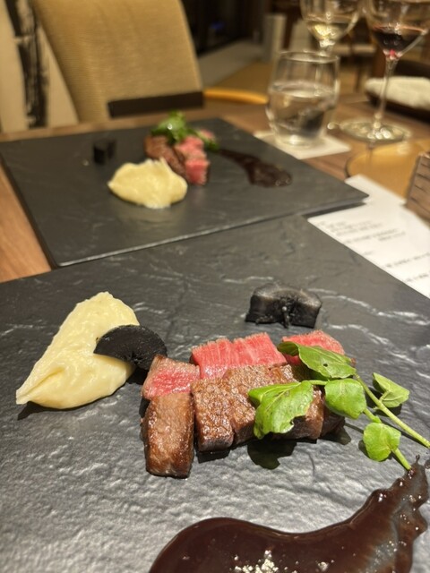 接客の質が素晴らしいのはもちろん、料理の質も非常に高く、どれも美味しく美しいです。メインの栃木牛のステーキは脂がとろけ、最高の味わいでした。日本酒やビール、ワインなどのお酒と共に楽しみました。