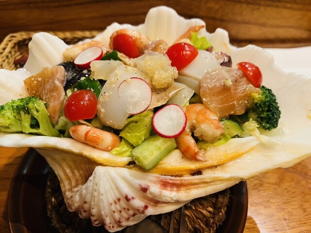 海鮮具材のサイズが全部大きくて嬉しいです!タコ、イカ、ザバ、サーモンが入っており見て目のビジュアルもとても良いです。他のメニューがこってりしているものが多いのであいまで食べるとサッパリできます。
