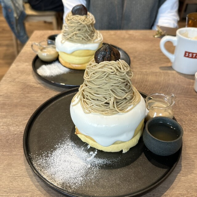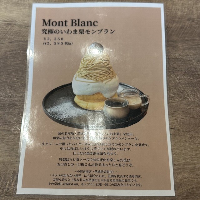 毎年楽しみにしているモンブランが乗ったパンケーキです。
