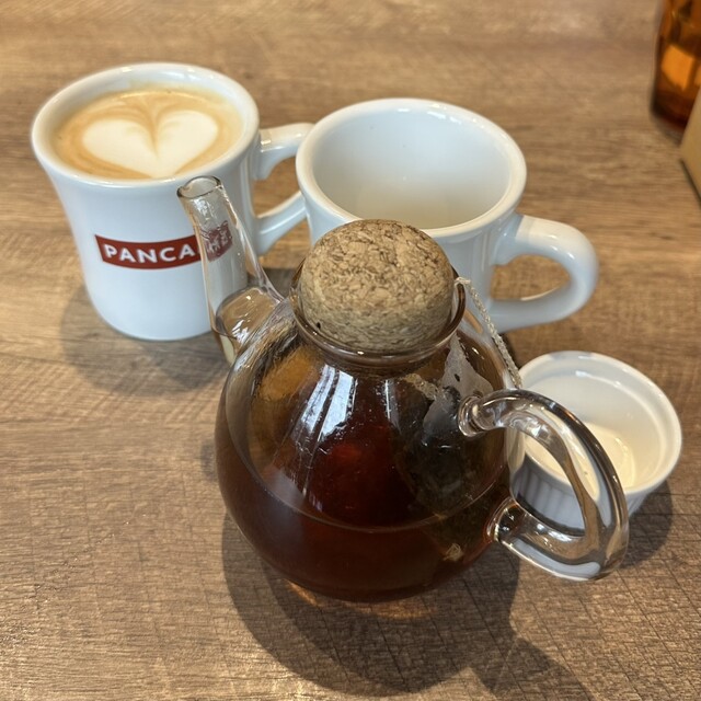 パンケーキは相変わらず美味。付け合わせの梅昆布茶は苦手なのでイマイチでしたが、中のほうじ茶プリンもほろ苦くバランスが取れた味でモンブランと相まって本当に美味しかったです。