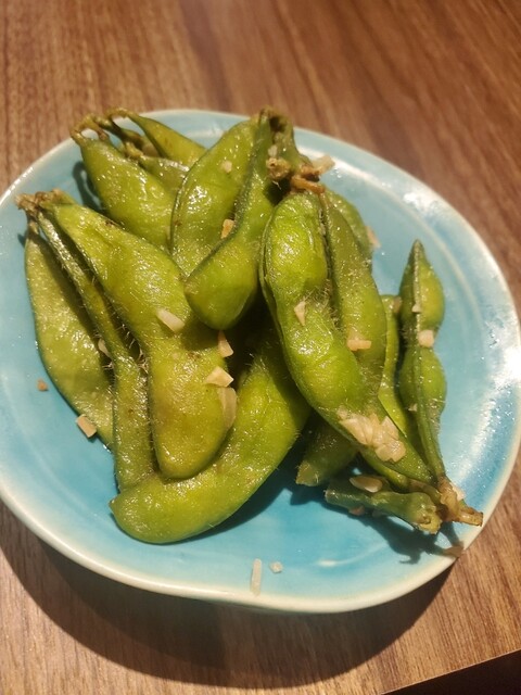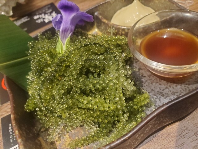 めちゃ柔らかいブリの照り煮 シャキシャキの海ぶどう さっぱり味付けのミミガー かなりの粒の大きい島らっきょう ガーリック枝豆(枝付きなんで良い枝豆ですね)