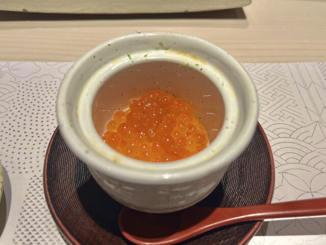 そして、この店で絶対に味わうべきなのが、スペシャルな茶碗蒸しだ。定番の逸品に、なんとオリーブオイルと穂じそが加えられている。和の出汁とオリーブオイルが織りなすまろやかなコク、そして穂じその爽やかな香りが鼻を抜ける。濃厚でありながら後味はさっぱりとしており、まさに夏にこそ食べたい、革新的な一皿だ。
