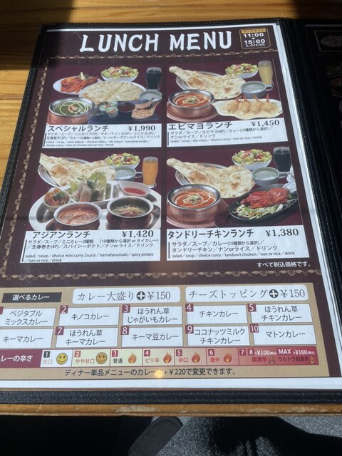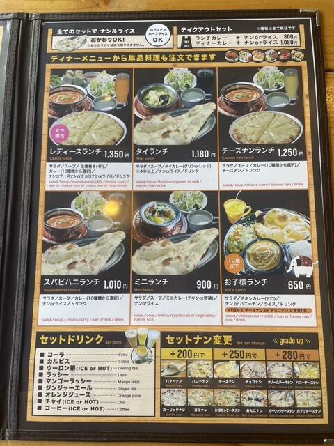 マンゴーラッシー、チーズナン、ほうれん草キーマーカレー6辛