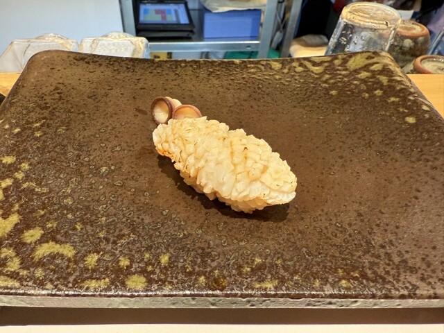 ジャンルを問わずさまざまなアプローチで楽しませてくれる構成。鮨のクオリティもさることながら、一品料理の幅と完成度の高さに驚かされます。しかも、5分に1品ずつテンポよく提供されるので、次々と変化があって全く飽きません。
