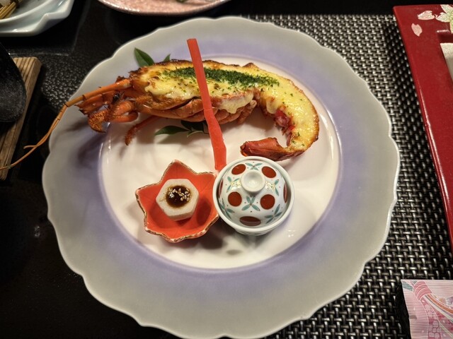 伊勢海老のグラタンは高級品を使った料理にしては珍しくがっつりとマヨが効いた昔懐かしい味わい。童心に帰り最後までしゃぶり尽くしたくなる一品でした。