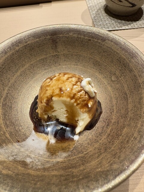 デザートはマンゴーシャーベット、塩バニラアイス、黒蜜の葛切りの少量3種で私は2種、妻は3種