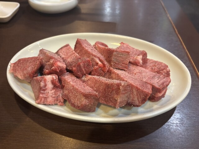 白米とお肉が運ばれてきて、トップバッターのタンはこれでもか!というくらいの分厚さで、ぶりっとした肉感がありつつも歯切れが良く、これから続くお肉を期待させます。