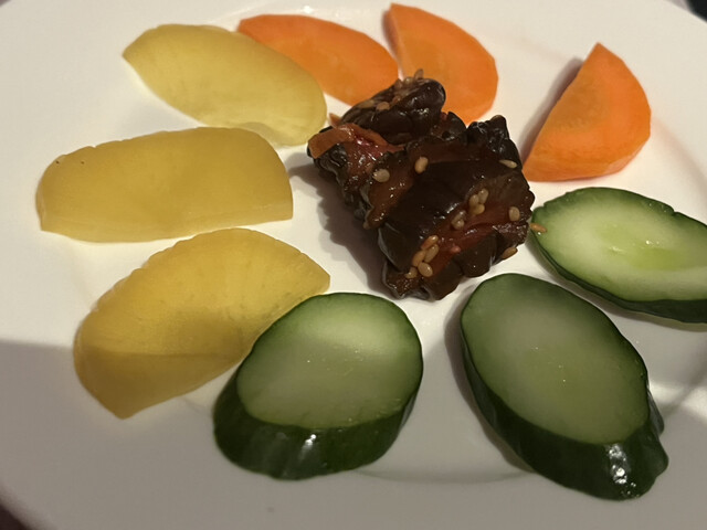 刺身の皿にはサーモンとマグロ。見るからに輝いていて、まるで魚が「どうぞ、俺たち最高だから」と言っているようだ。まずはサーモン。脂ののった橙色の身をひと口入れると、口の中でとろけて消える。「脂が甘い」ってこういうことかと頷く。次にマグロ。赤身の引き締まった食感が、さっきのサーモンの柔らかさを引き締めてくれる。まるで甘口カレーの後にブラックコーヒーを飲むようなコントラスト。交互に食べているうちに、箸が止まらなくなった。