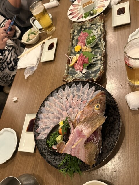 7000円の飲み放題コースを頼みました。お通しが豚しゃぶで驚きました。出汁が効いてて美味しかったです。クーポンで刺身追加を頼んだところ活き造りのアコウダイが出てきましたが、乾いた刺身でイマイチ。後作り...