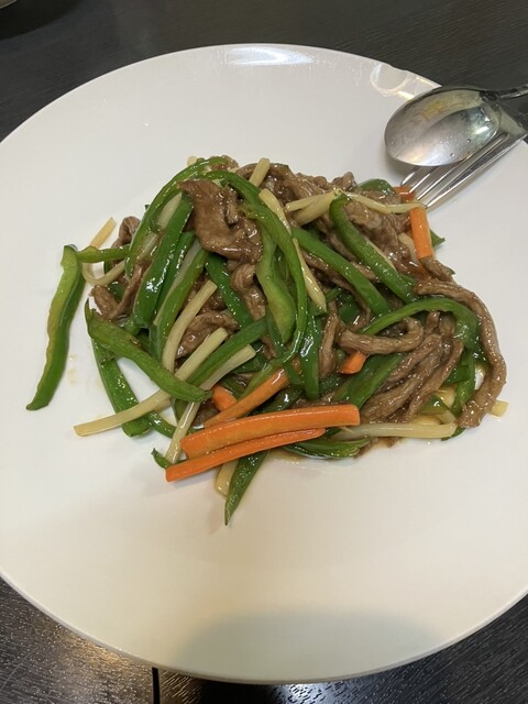 こちらはシェアして食べよーってことで、牛肉とピーマンの細切り炒めも!