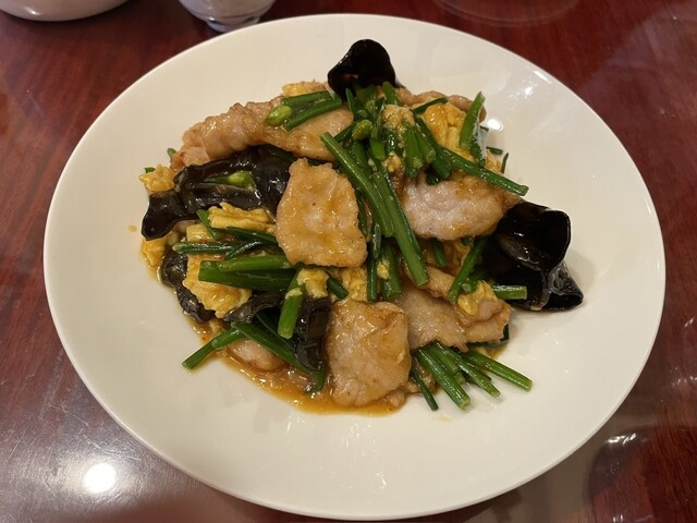 注文したのは、皮付き豚バラ肉の焼物、A菜の炒め物、ニラとキクラゲの卵炒め、黒毛和牛と彩り野菜の黒胡椒炒め、そして紹興酒。提供はとても早いです。先ずは豚バラ肉が出てきました。早速いただくとこれがまた皮がパリパリでめちゃくちゃ美味しいいい!紹興酒が進みますね。そしてA菜の炒め物の濃厚さと言ったらもう〜お代わりしたいくらいの美味しさでした。ニラとキクラゲの卵炒めと黒毛和牛と彩り野菜の黒胡椒炒めもしっかりとした味付けで私好み。特に黒毛和牛は凄く柔らかくて鉄板焼ステーキを食べたような気分になりました。