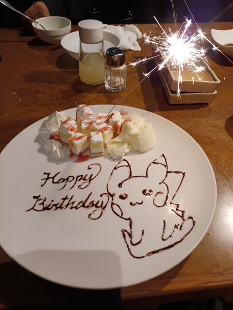 食後は何とサプライズ!バースデーケーキを提供して頂き、感激しました。