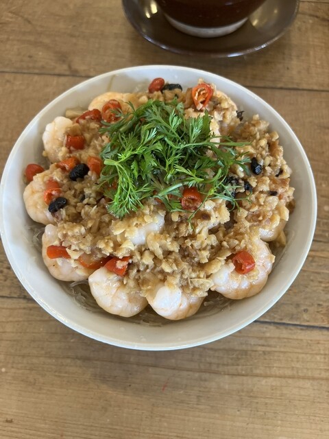 目を引くのは、トッピングされた揚げ海老。サクッと香ばしく、スープに染み出すことで全体に海鮮の風味が広がる。