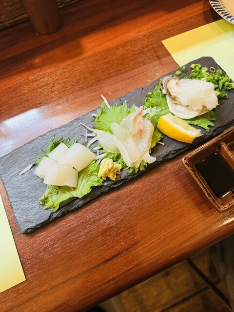 本日もヒラメ、しまあじ、アオリイカの3種盛り。