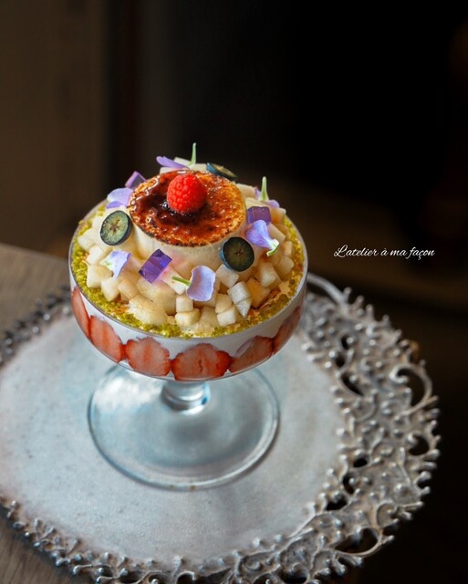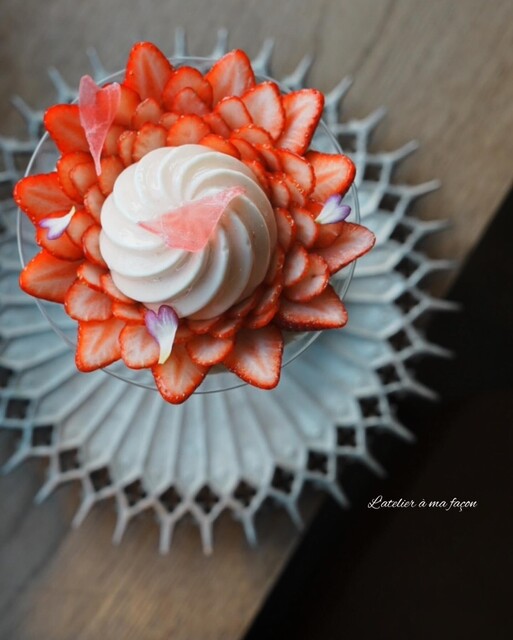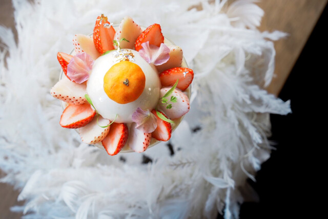 焼きメレンゲで作ったアイスと博多あまおうのグラスデザート