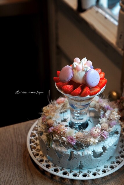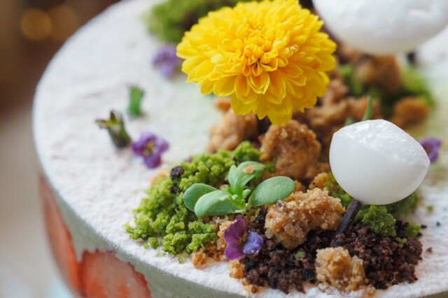 たんぽぽの可愛さを改めて感じれる、よもぎと苺のちょっと大人なフレジエ