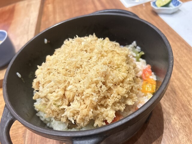 トマトの炊き込みご飯も美味しかったけど、やはりサクサクのかき揚げを混ぜた後のの食感が絶妙で美味しさ倍速!