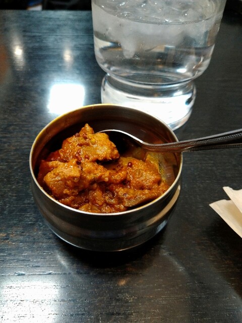2度目の来店で、前回より辛☆が2つ多い☆☆☆のインドカレーに、なすのピクルスを添えていただきました。
