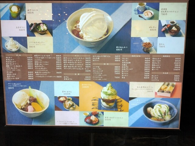 あんみつの餡が美味しい。豆の粒が残る炊き加減で、豆の味がとても良かった。