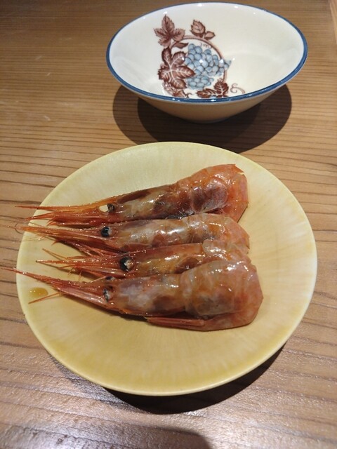 よこわまぐろの卵黄醤油からスタートし、甘えびの古酒漬け、新ごぼうのうま煮、親鶏もも炭焼きと続きました。牛しゃぶと牡蠣も気になり、こちらも注文。4品は他の注文状況に応じて調整されるそうです。