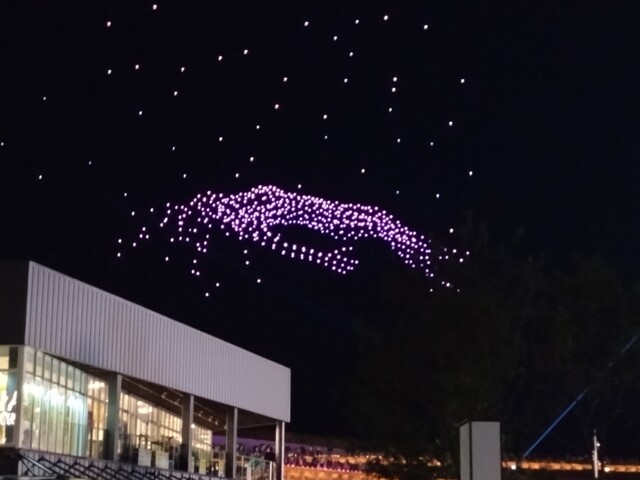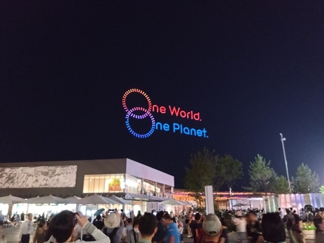 万博ポルトガルレストラン お料理を堪能しながら見るドローンショーは最高でした!