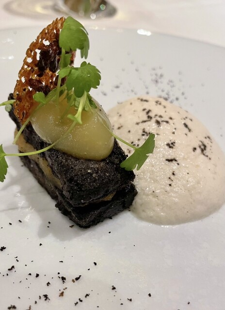 ピリッとフレッシュな生姜のエスプーマ、中に仕込まれた林檎とが織りなす爽やかで複雑な味が実に良い。