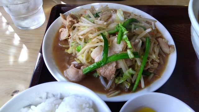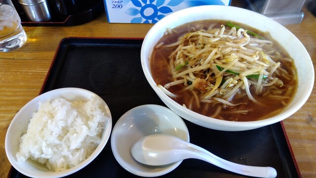 もやしたっぷりピリッと辛いもやし炒めラーメン・野菜餃子(4ケ)・半ライス(\950)