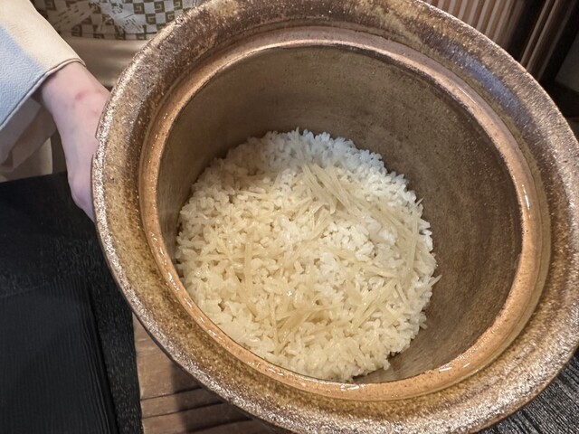 ○食事 新生姜御飯 香の物 蜆佃煮 蕨 牛蒡 胡瓜浅漬け