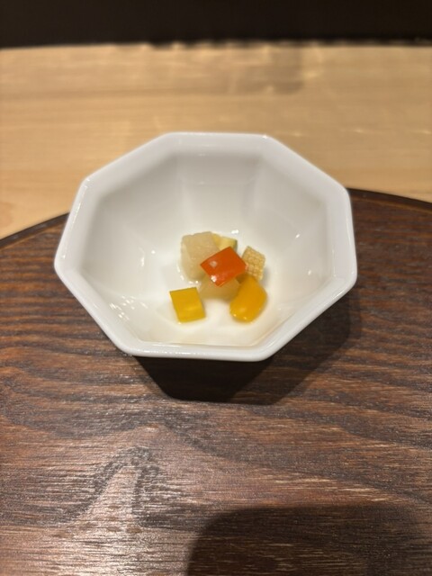 ガリの代わりに出される一品も手が込んでいて、大将のこだわりが端々まで伝わってきます。