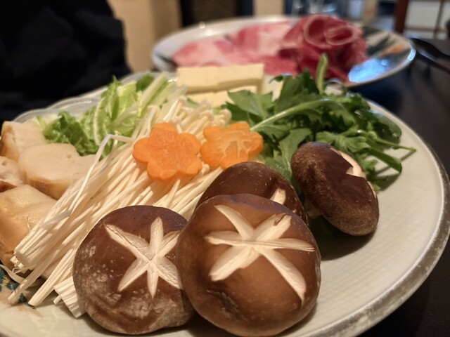 一番初めの焼きしゃぶを楽しませていただき、沢山の野菜、そして割下と白だしまでおいてもらえて