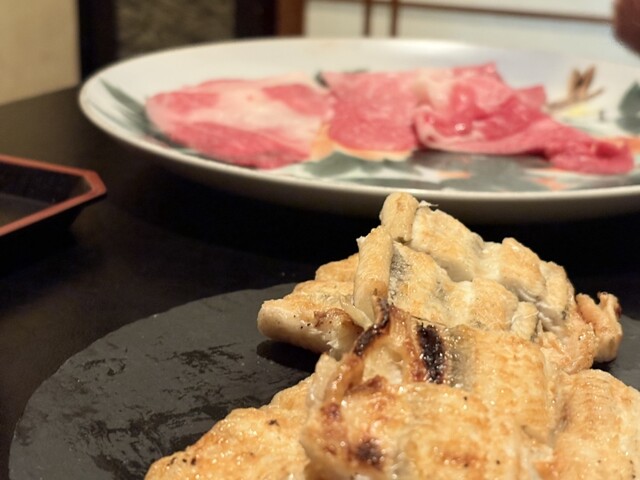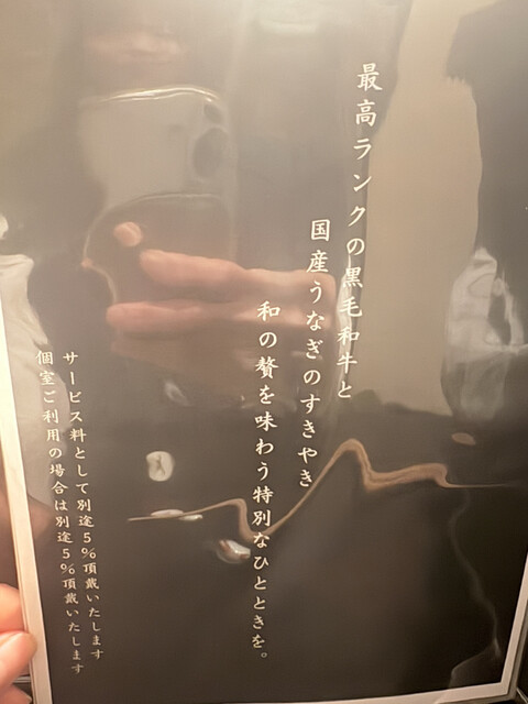 名物!ハイブリッドすき焼きとは、黒毛和牛と国産鰻を組み合わせた、お店独自の名物すき焼きをいただきました。