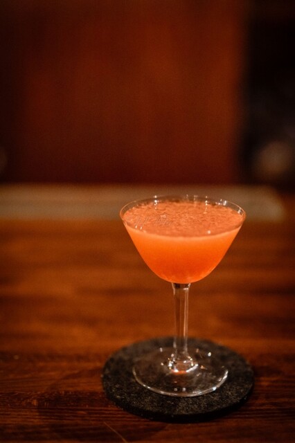 メニューなし、爽やかとスパークリングから初め、最初はパッションフルーツとオレンジとスパークリングワイン。フルーティーけど甘さと酸味はちょうどいい、バランスも良く、美味しい